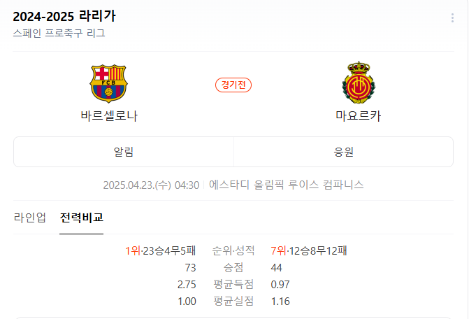 2025년 4월 23일 바르셀로나 vs 마요르카 경기 분석 및 예측 ⚽