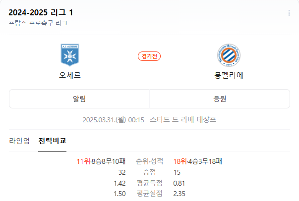 2025년 3월 30일, 오세르와 몽펠리에의 경기에 대한 정보 포스팅을 시작하겠습니다. 두 팀의 현재 상황과 경기 예측을 알아보겠습니다.