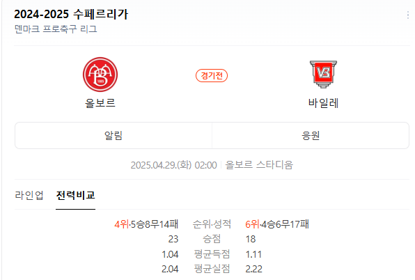 2025년 04월 29일 올보르 BK 바일레 볼드클룹,2025년 04월 29일 리즈 브리스톨 경기 분석 및 경기 예측을 소개하고자 합니다.