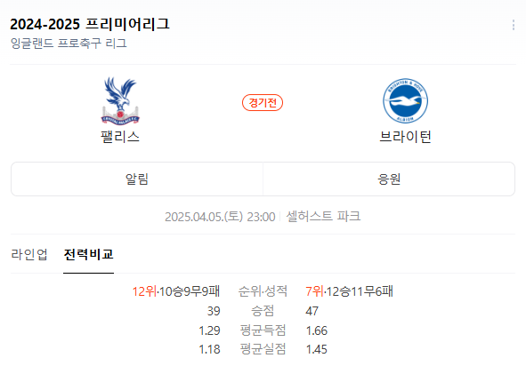 2025년 4월 5일, 크리스탈 팰리스와 브라이턴의 경기가 예정되어 있습니다. 이 경기는 프리미어 리그의 중요한 대결로, 두 팀 모두 승리를 위해 최선을 다할 것입니다.