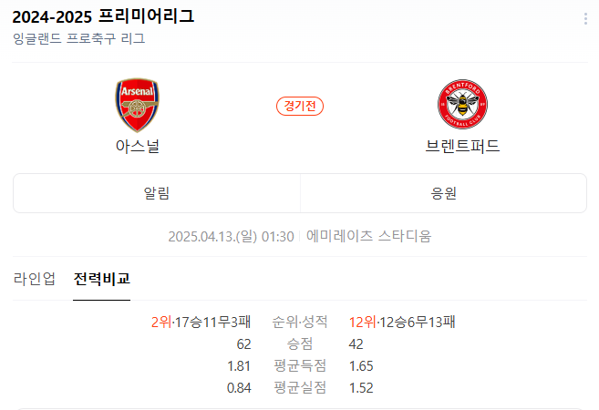 이번 경기는 프리미어 리그의 중요한 대결로, 아스널 FC가 홈에서 브렌트퍼드 FC를 맞이합니다. 두 팀 모두 승리를 위해 최선을 다할 것으로 예상됩니다. 아스널은 강력한 공격력을 자랑하며, 브렌트퍼드는 수비에 강점을 두고 있는 팀입니다.