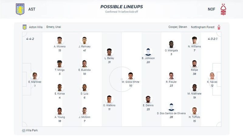 양 팀의 예상 라인업을 살펴보면, 애스턴 빌라는 4-4-2 포메이션으로 나설 것으로 보입니다. 주요 선수로는 마르티네스, 밍스, 그리고 왓킨스가 포함될 예정입니다.