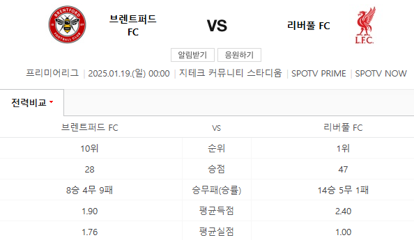- 현재 성적: 브렌트포드는 프리미어리그 중위권에 위치하고 있으며, 최근 몇 시즌 동안 탄탄한 성적을 이어가고 있습니다. 홈에서 강한 모습을 보이는 팀으로, 팀의 강점은 조직적인 수비와 빠른 역습입니다.