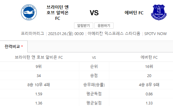 • 원정 경기의 어려움: 에버턴은 원정에서 경기력이 부진할 때가 많습니다. 특히, 브라이턴처럼 공격적인 팀을 상대할 때는 더욱 힘든 경기를 펼칠 가능성이 큽니다.