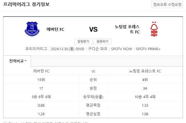 - 예상 스코어: 에버턴 2-1 노팅엄 포레스트