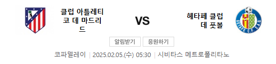 2월 5일 코파델레이 아틀레티코 헤타페 헤타페의 중원에서의 압박으로 아틀레티코 공격을 막을 것인가/경기 분석/경기 예측