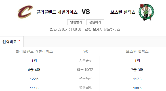 2월 5일 NBA 경기 클리블랜드 보스턴 클리블랜드의 수비라인을 철저하게 준비할 것인가/경기 분석/경기 예측