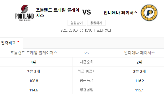 이번 경기는 포틀랜드 트레일 블레이저스의 홈구장인 모다 센터에서 열리며, 인디애나 페이서스와의 맞대결입니다. 두 팀 모두 플레이오프 진출을 위해 중요한 경기를 치르게 되며, 팬들의 열띤 응원이 예상됩니다. 포틀랜드는 최근 상승세를 타고 있으며, 인디애나 역시 강력한 전력을 자랑하고 있습니다.