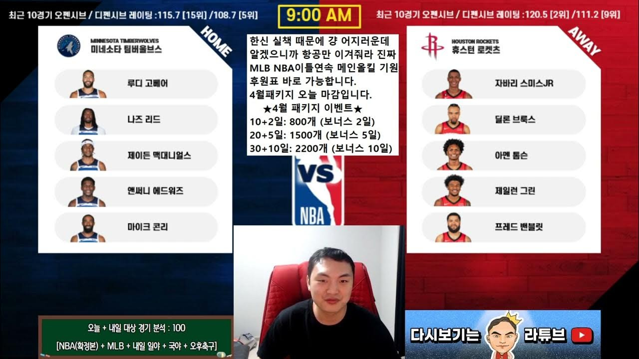 미네소타 팀버울브스는 NBA 서부 컨퍼런스에 속한 팀으로, 최근 몇 년간 꾸준한 성적을 내고 있습니다. 팀의 주축 선수인 앤서니 에드워즈는 뛰어난 득점력과 운동 능력을 바탕으로 팀을 이끌고 있습니다. 반면, 휴스턴 로켓츠는 젊은 선수들로 구성된 팀으로, 빠른 템포의 농구를 구사하며, 제이렌 그린과 프레드 반블리트가 핵심 선수로 활약하고 있습니다.