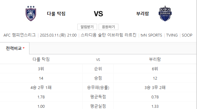 2025년 3월 11일, AFC 챔피언스리그에서 다룰 탁짐 부리람과의 경기가 예정되어 있습니다. 이번 경기는 많은 축구 팬들의 기대를 모으고 있으며, 두 팀의 전력과 스타일을 분석해보겠습니다.