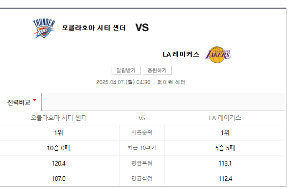 안녕하세요, 농구 팬 여러분! 오늘은 2025년 4월 7일에 열릴 오클라호마 시티 썬더와 LA 레이커스의 경기에 대해 리뷰해보겠습니다. 이 경기는 NBA 팬들에게 큰 기대를 모으고 있으며, 두 팀의 최근 성적과 선수들의 활약을 바탕으로 경기 분석과 예측을 해보겠습니다. 🏀