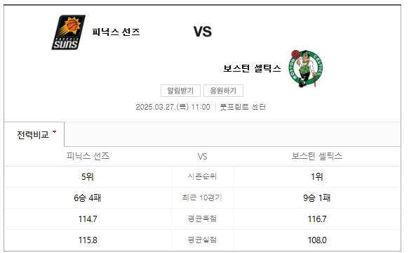 이번 경기는 두 팀의 스타일이 상반되는 점에서 흥미롭습니다. 피닉스 선즈는 빠른 공격과 외곽 슈팅에 강점을 보이고 있으며, 보스턴 셀틱스는 강력한 수비와 팀워크를 바탕으로 경기를 운영합니다. 두 팀의 맞대결은 팬들에게 큰 기대를 모으고 있습니다.