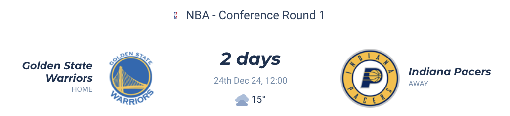 골든 스테이트 워리어스와 인디애나 페이서스의 경기 일정입니다. 이 경기도 페이서스의 전력을 가늠할 수 있는 중요한 경기입니다.