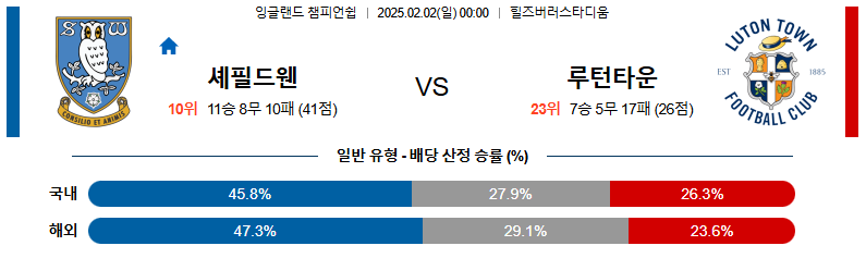 셰필드 웬즈데이는 최근 5경기에서 2무 3패를 기록하며 부진한 흐름을 보이고 있습니다. 특히 최근 2경기 연속으로 무득점에 그치며 전력 붕괴 수준의 상황에 직면해 있습니다. 이러한 상황에서 팀의 사기가 저하될 수 있지만, 홈에서의 경기는 항상 다른 양상을 보일 수 있습니다.