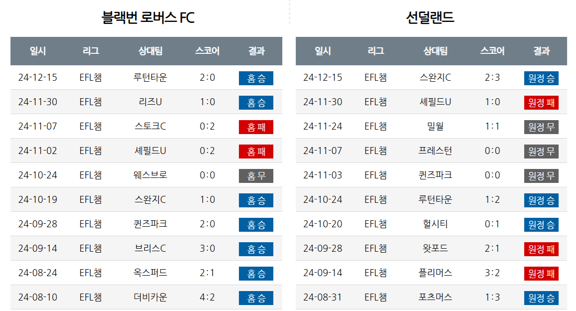최근 선덜랜드는 스완지 시티와의 경기에서 3:2로 승리하며 좋은 흐름을 이어가고 있습니다. 반면 블랙번은 루턴 타운을 상대로 2:0으로 승리했지만, 스토크 시티에게 0:2로 패배한 경기도 있었습니다. 이러한 성적은 양 팀의 현재 폼을 잘 보여줍니다.