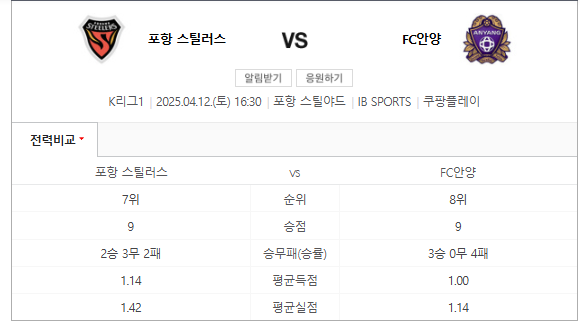 포항 스틸러스와 FC 안양의 경기가 2025년 4월 12일에 열립니다. 이번 경기는 K리그1의 중요한 대결로, 양 팀 모두 승리를 위해 최선을 다할 것입니다. 이번 포스팅에서는 경기의 전반적인 분석과 예측을 해보겠습니다. ⚽️