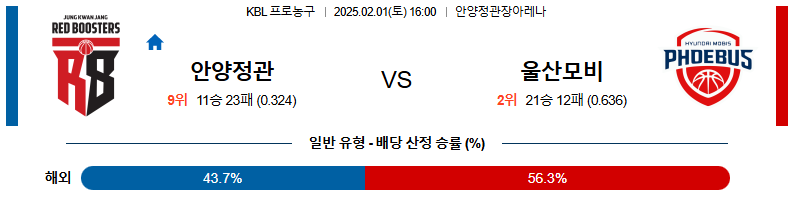 울산 현대모비스는 강력한 공격력과 안정적인 수비를 자랑하는 팀입니다. 특히, 주전 선수들의 기량이 뛰어나며, 팀워크가 잘 이루어져 있습니다. 반면, 안양 정관장은 최근 몇 경기에서 부진한 모습을 보였지만, 홈에서의 경기력은 나쁘지 않았습니다. 이 팀은 강한 수비와 빠른 역습을 통해 승리를 노릴 것입니다.