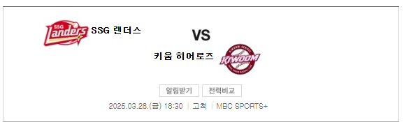 KBO리그 03월 28일 SSG 랜더스 키움 히어로즈 경기 분석/경기 예측