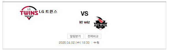 2025년 4월 2일 수요일, LG 트윈스와 kt의 경기가 시작됩니다. 이 경기는 KBO 리그의 중요한 일정 중 하나로, 두 팀 모두 승리를 위해 최선을 다할 것입니다.