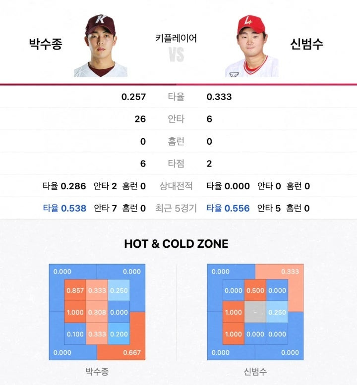 에서 두 선수의 성적을 비교해보면, 신범수가 조금 더 우세한 모습을 보이고 있습니다.