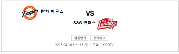 04월 16일 한화 이글스 SSG 랜더스/kt wiz KIA 타이거즈/ 키움 히어로즈 롯데 자이언츠/삼성 라이온즈 LG 트윈스/ 두산 베어스 NC 다이노스