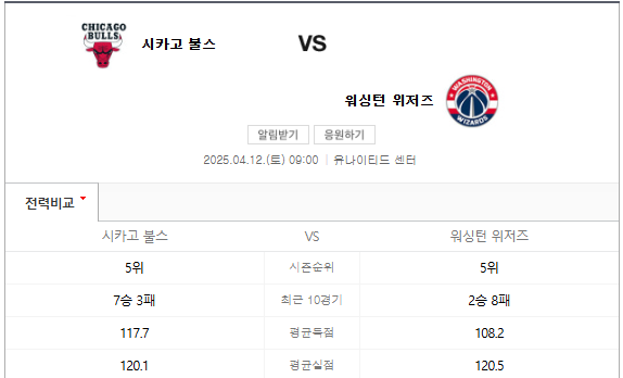 4월12일 시카고 불스 워싱턴 위저즈/ 댈러스 매버릭스 토론토 랩터스/ 덴버 너게츠 멤피스 그리즐리스 경기 분석 및 경기 예측을 소개하고자 합니다.