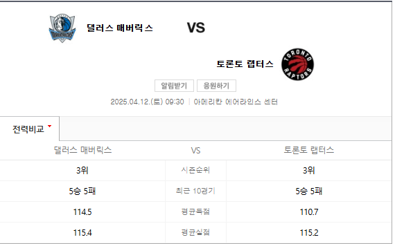 [2] 젠토토 - NBA 2024/2025 토론토 랩터스 vs 댈러스 매버릭스 경기분석 ... (https://www.zentoto.com/analizer/toronto-raptors-dallas-mavericks/zB6Q2yT4/240027/45)
