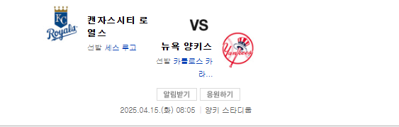 캔자스시티 로열스는 최근 공격적인 오프시즌을 보냈으며, 2024 시즌에서 86승 76패를 기록하며 상승세를 타고 있습니다. 반면, 뉴욕 양키스는 전통적인 강팀으로서, 항상 높은 승률을 유지하고 있습니다. 현재 양 팀 모두 부상자 없이 최상의 컨디션을 유지하고 있어, 경기는 더욱 치열할 것으로 보입니다.