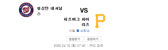 워싱턴 내셔널스와 피츠버그 파이리츠의 경기는 2025년 4월 15일 오후 3시 40분에 열릴 예정입니다. 이번 경기는 MLB의 한 매치로, 두 팀의 전력과 최근 성적을 분석하여 팬들이 기대할 수 있는 요소들을 살펴보겠습니다.