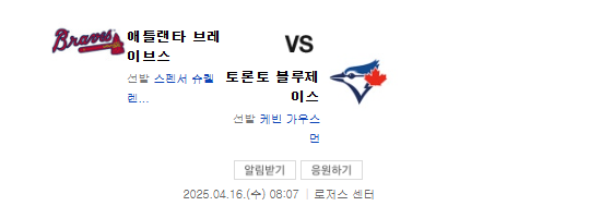 2025년4월16일 보스턴 레드삭스 탬파베이 레이스/애틀랜타 브레이브스 토론토 블루제이스/뉴욕 메츠 미네소타 트윈스 경기 분석 및 경기 예측을 소개하고자 합니다.