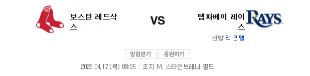 2025년4월17일 보스턴 레드삭스 탬파베이 레이스/캔자스시티 로열스 뉴욕 양키스 경기 분석 및 경기 예측을 소개하고자 합니다.