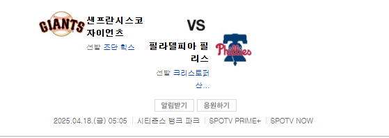 2025년4월18일 샌프란시스코 자이언츠 필라델피아 필리스/클리블랜드 가디언스 볼티모어 오리올스 경기 분석 및 경기 예측을 소개하고자 합니다.