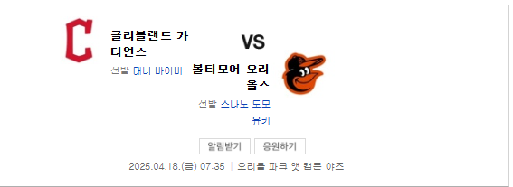 2. 클리블랜드 가디언스 볼티모어 오리올스