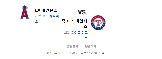2025년 4월 18일, LA 에인절스와 텍사스 레인저스의 경기가 열립니다. 이 경기는 MLB 정규 시즌의 중요한 일환으로, 두 팀 모두 승리를 위해 최선을 다할 것입니다. 양 팀의 팬들은 이번 경기를 통해 팀의 기세를 확인하고 싶어 할 것입니다.