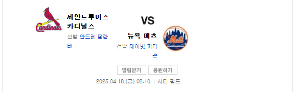 2025년4월18일 세인트루이스 카디널스 뉴욕 메츠/ LA 에인절스 텍사스 레인저스 경기 분석 및 경기 예측을 소개하고자 합니다.