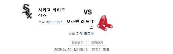 - 예상 스코어: 보스턴 레드삭스 6-3 시카고 화이트삭스