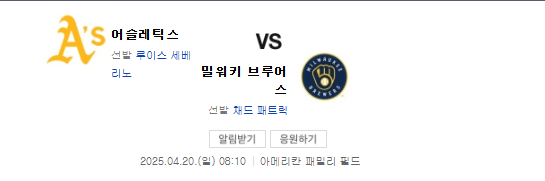 - 예상 스코어: 밀워키 브루어스 6-3 오클랜드 애슬레틱스