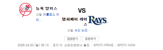 - 예상 스코어: 뉴욕 양키스 5-2 탬파베이 레이스