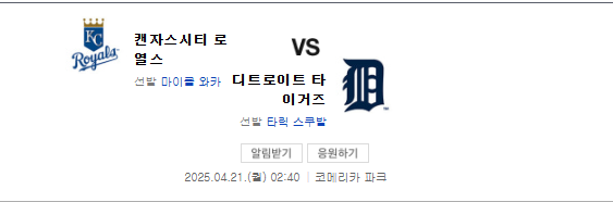 이번 경기는 2025년 4월 21일 오후 3시 40분에 디트로이트의 코메리카 파크에서 열립니다. 캔자스시티 로열스와 디트로이트 타이거즈는 메이저리그에서 오랜 라이벌 관계를 유지하고 있으며, 이번 경기는 두 팀 모두에게 중요한 의미가 있습니다.