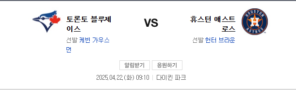 3. 토론토 블루제이스 휴스턴 애스트로스