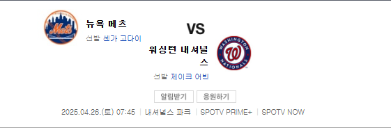 이번 경기는 메츠가 유리할 것으로 예상합니다. 메츠의 강력한 투수진과 타선이 내셔널스의 약점을 공략할 가능성이 높습니다. 하지만, 내셔널스가 홈에서의 이점을 살린다면, 충분히 경기를 뒤집을 수 있는 기회가 있을 것입니다.