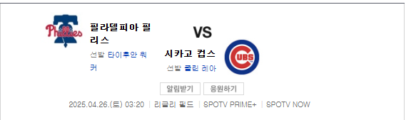2025년4월26일 필라델피아 필리스 시카고 컵스/ 볼티모어 오리올스 디트로이트 타이거즈/ 뉴욕 메츠 워싱턴 내셔널스 경기 분석 및 경기 예측을 소개하고자 합니다.