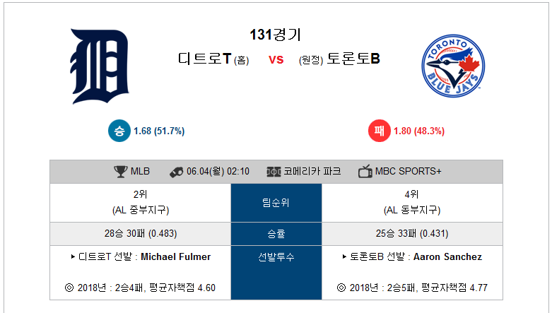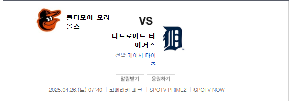 2. 볼티모어 오리올스 디트로이트 타이거즈