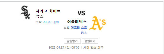 이번 경기는 양 팀의 기세와 선수들의 컨디션에 따라 결과가 달라질 것으로 예상됩니다. 화이트삭스가 홈에서의 이점을 살려 승리할 가능성도 있지만, 애슬레틱스의 상승세를 고려할 때, 예측하기 어려운 경기입니다. 팬들은 두 팀의 치열한 대결을 기대하고 있습니다.