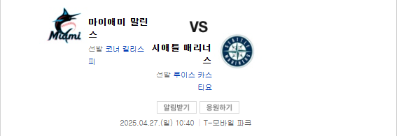 이번 경기는 시애틀의 홈구장인 T-Mobile Park에서 열리며, 오후 1시 10분에 시작됩니다. 시애틀 매리너스는 최근 좋은 흐름을 이어가고 있으며, 마이애미 말린스는 어려운 상황에 처해 있습니다. 이러한 배경 속에서 두 팀의 맞대결은 팬들에게 큰 기대를 모으고 있습니다.