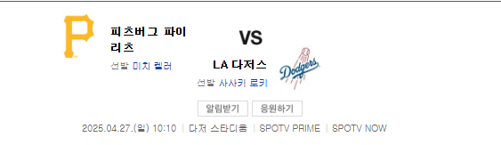 이번 경기는 두 팀의 맞대결로, 피츠버그의 강력한 타선과 LA 다저스의 안정적인 투수진이 맞붙는 흥미로운 경기입니다. 피츠버그는 홈에서의 이점을 살려 경기를 유리하게 이끌어갈 것으로 예상됩니다. 그러나 LA 다저스의 강력한 공격력도 무시할 수 없기 때문에, 경기는 치열할 것으로 보입니다.