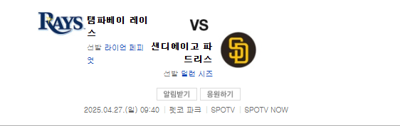 2025년4월27일 탬파베이 레이스 샌디에이고 파드리스/피츠버그 파이리츠 LA 다저스/마이애미 말린스 시애틀 매리너스 경기 분석 및 경기 예측을 소개하고자 합니다.