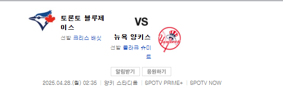 2025년4월28일 토론토 블루제이스 뉴욕 양키스/2025년4월28일 뉴욕 메츠 워싱턴 내셔널스2025년4월28일 보스턴 레드삭스 클리블랜드 가디언스 경기 분석 및 경기 예측을 소개하고자 합니다.
