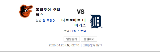 2. 2025년4월28일 볼티모어 오리올스 디트로이트 타이거즈