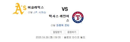 2025년4월29일 어슬레틱스 텍사스 레인저스/2025년4월29일 디트로이트 타이거즈 휴스턴 애스트로스/2025년4월29일 애틀랜타 브레이브스 콜로라도 로키스/2025년4월29일 마이애미 말린스 LA 다저스 경기 분석 및 경기 예측을 소개하고자 합니다.